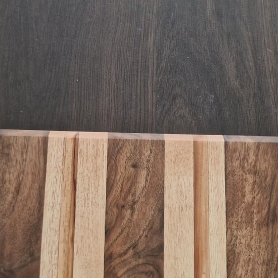 Crafted from a striking blend of walnut, maple, and cherry, this handcrafted chopping board brings warmth and natural beauty to any kitchen. The contrasting hardwoods create a rich, timeless pattern, while the smooth, durable surface is perfect for everyday food preparation or stylish serving.