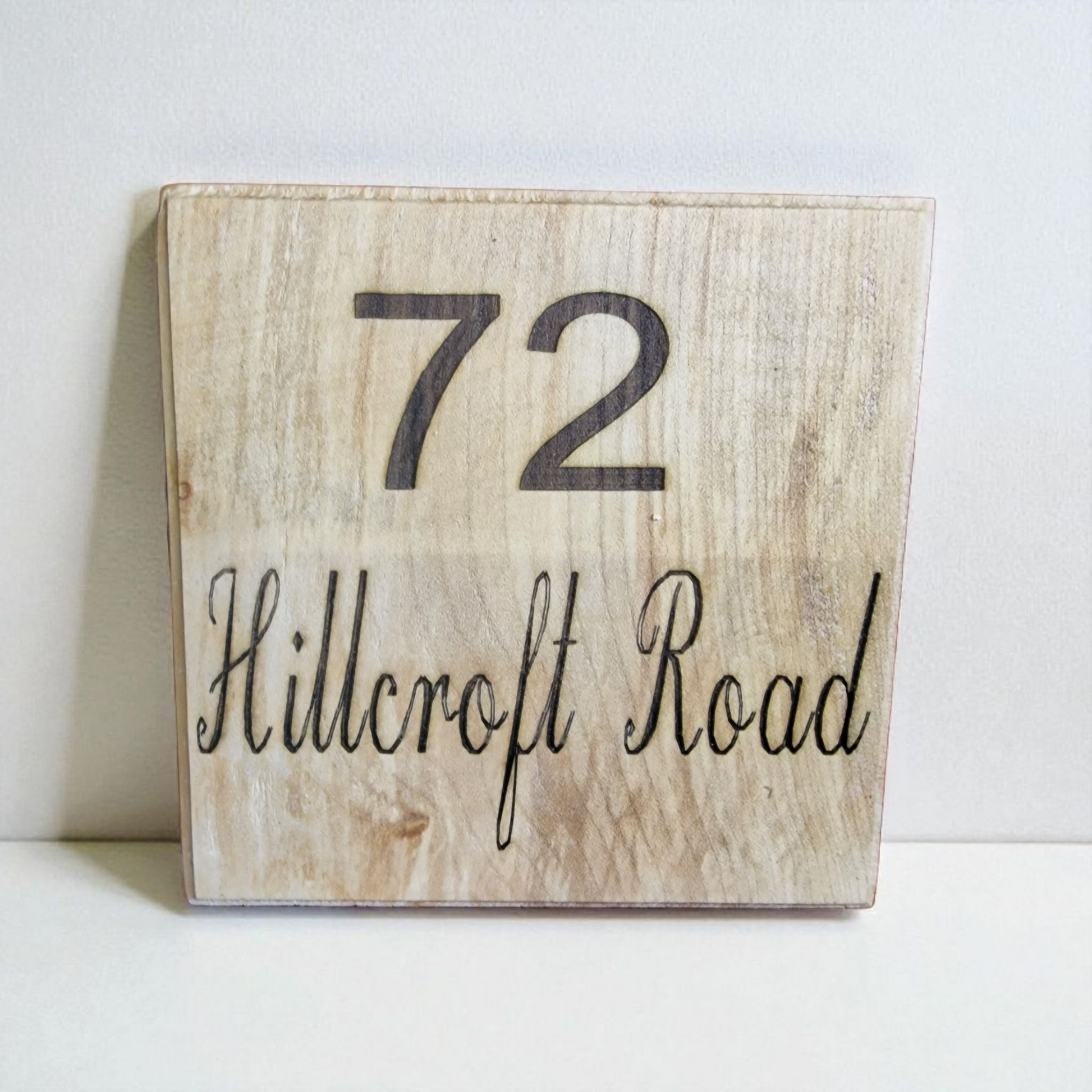 Handcrafted square house sign carved from ash wood and sealed with clear lacquer for lasting weather protection. Perfect for adding a personal touch to your home's entrance whilst maintaining its natural beauty through the seasons.