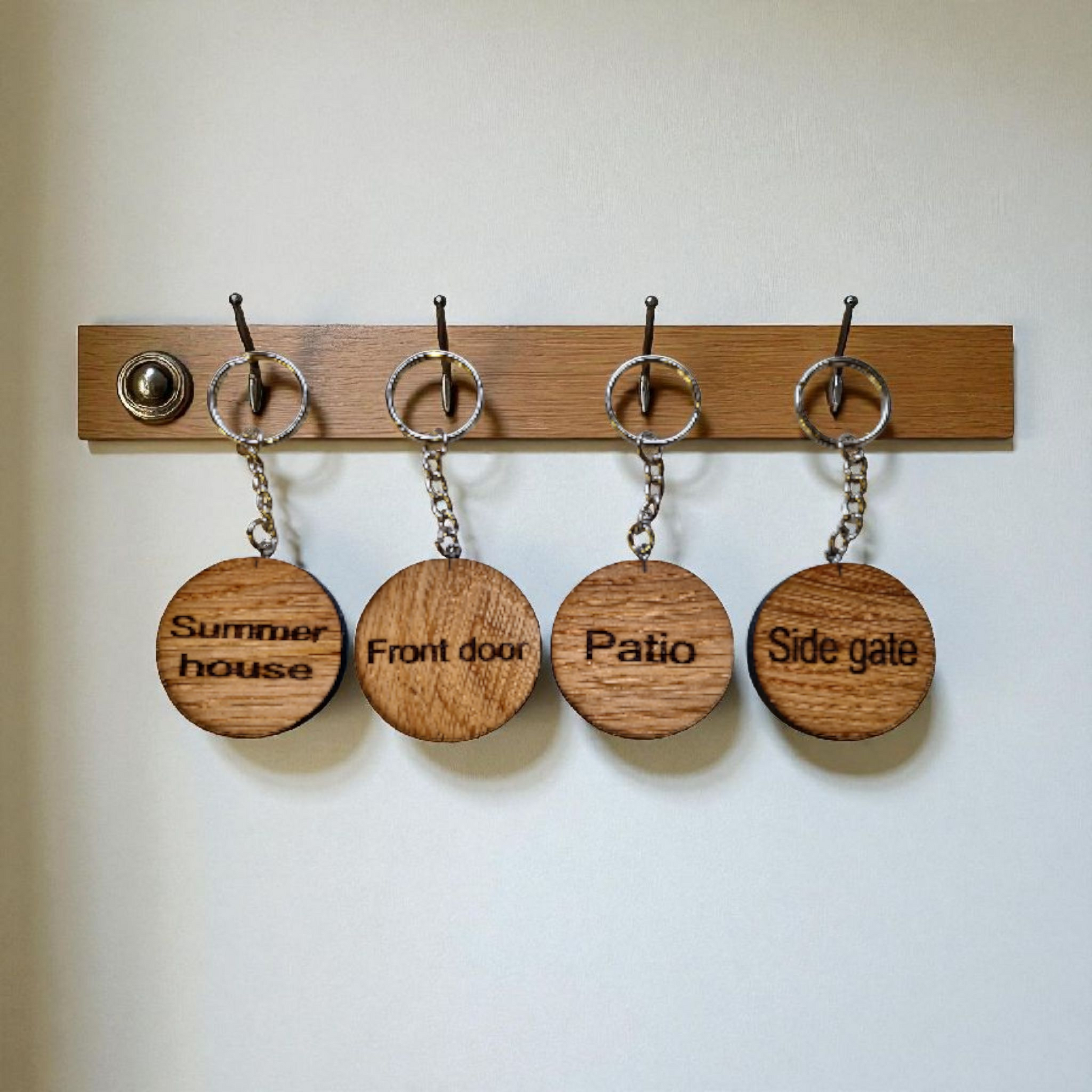 Beautifully handcrafted from natural oak wood, these key fobs feature a smooth finish and distinctive grain patterns. Sturdy yet lightweight, they keep your keys organized while adding a touch of artisan quality to your everyday carry. An excellent choice for those who appreciate genuine craftsmanship.