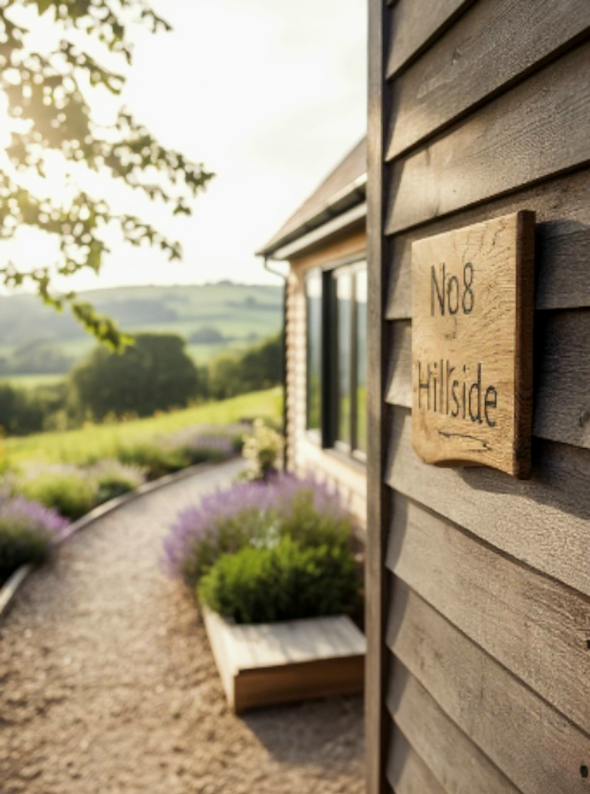 A striking live edge oak house sign that brings natural character to your home. Each piece showcases the wood's unique grain and organic edges, creating a rustic focal point for your entrance. Handcrafted from quality oak with a square design, it's built to last and weather beautifully over time. Perfect for adding warmth and personality to any property.